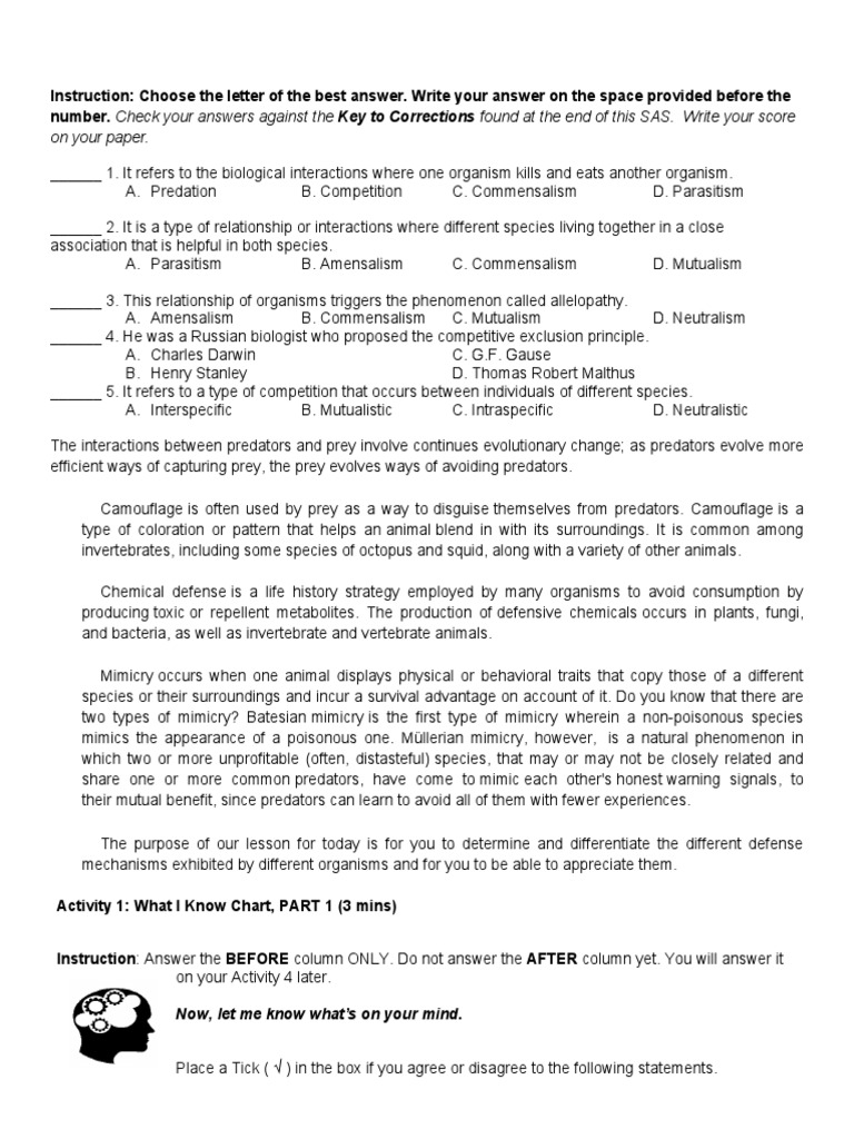 ______ 1. It refers to the biological interactions where one organism kills and eats another organism.