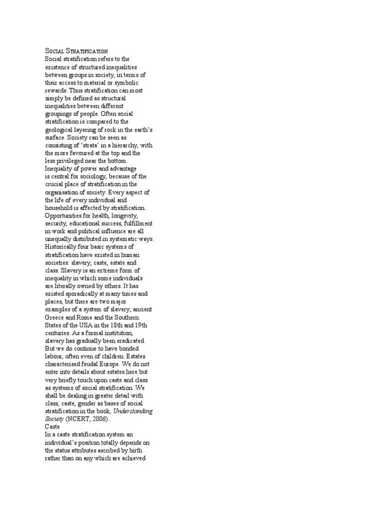 SOCIAL STRATIFICATION