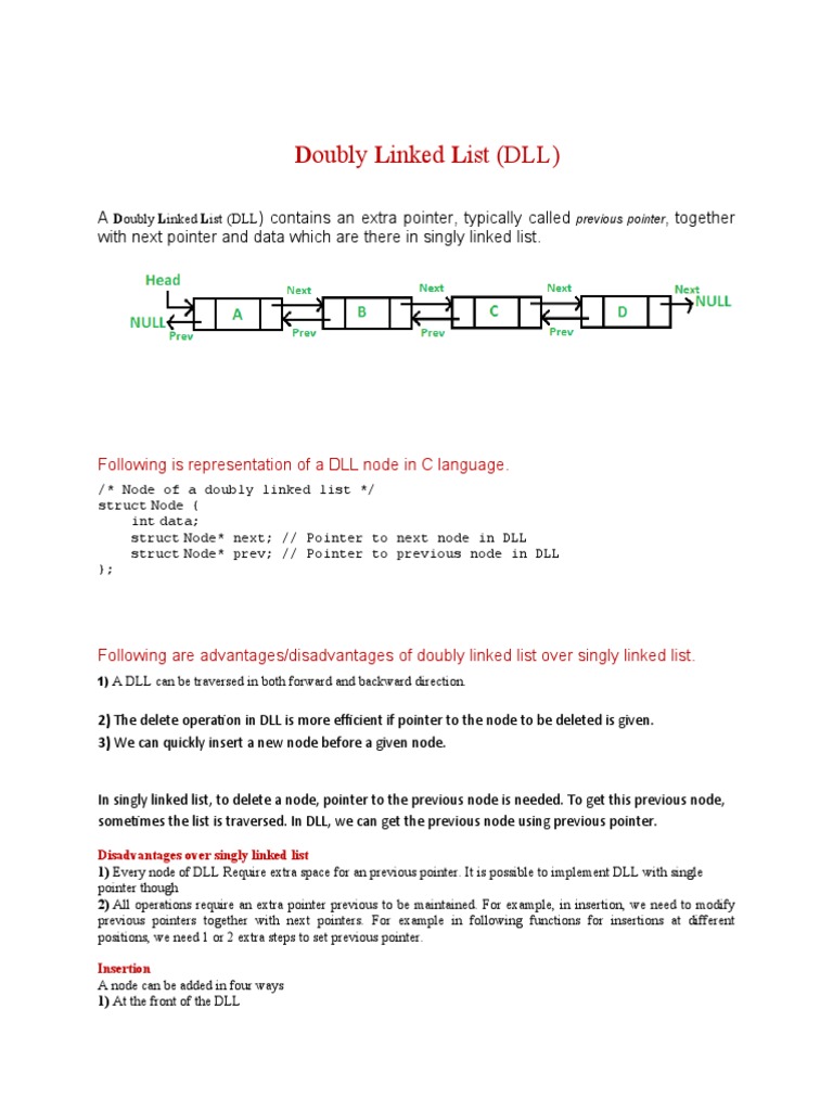 A Doubly Linked List (DLL) contains an extra pointer, typically called previous pointer, together