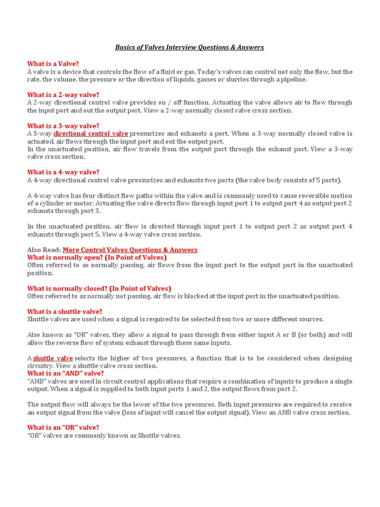 Basics of Valves Interview Questions & Answers