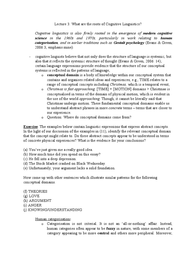 Lecture 3: What are the roots of Cognitive Linguistics?