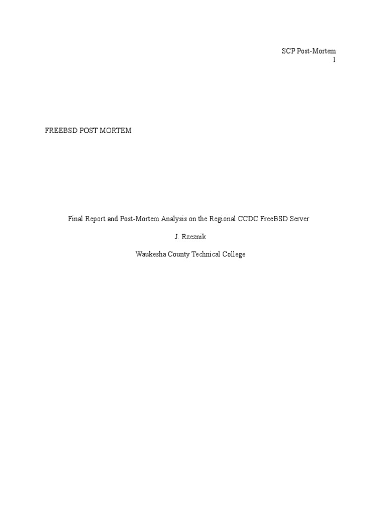 Final Report and Post-Mortem Analysis on the Regional CCDC FreeBSD Server