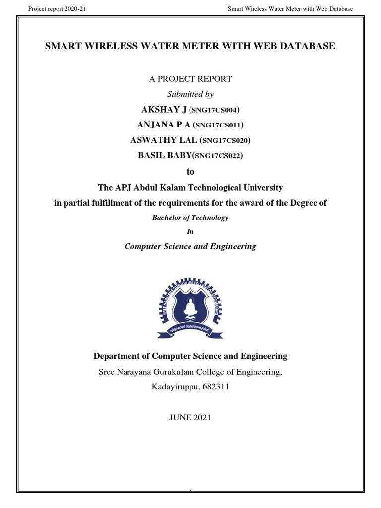 Project report 2020-21 Smart Wireless Water Meter with Web Database