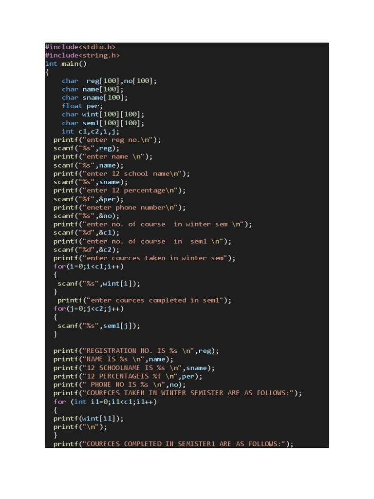 printf("enter cources taken in winter sem");