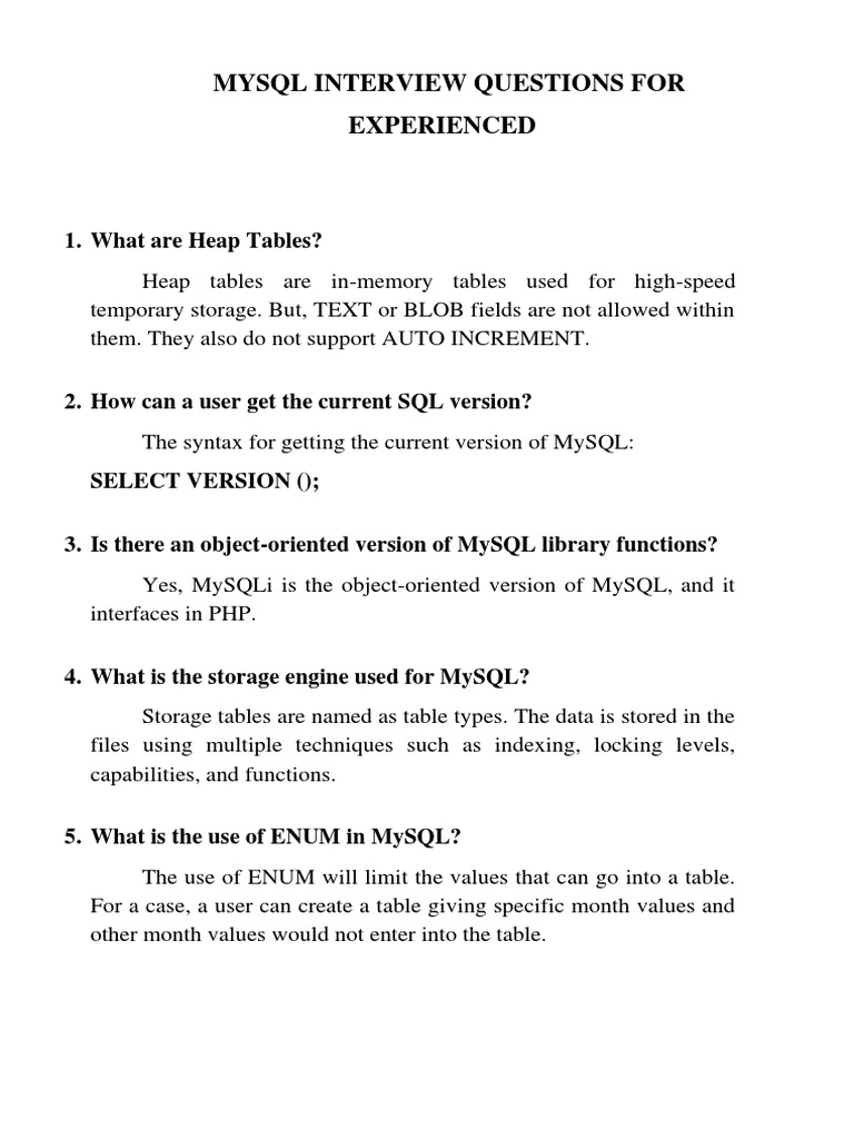 MYSQL INTERVIEW QUESTIONS FOR