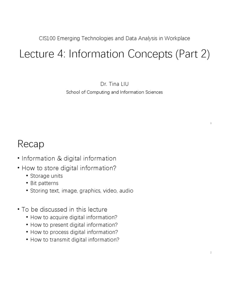 CIS100 Emerging Technologies and Data Analysis in Workplace
