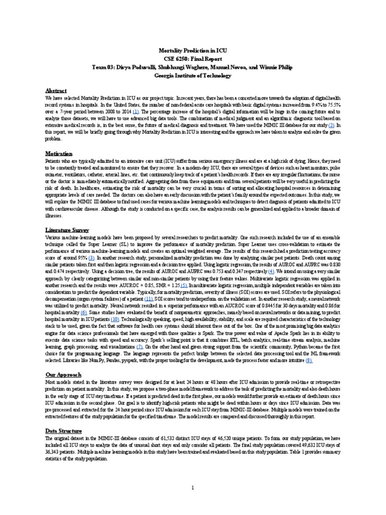 6. Zahid, M.A. “Mortality Prediction with Self Normalizing Neural Networks in Intensive Care Unit Patients.” IEE Xplore, Wiley-IEEE Press, 4