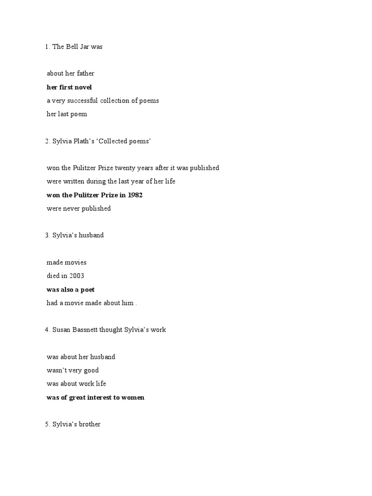 recognition that she had sought for most of her life. Her first novel 'The Bell Jar' had just
