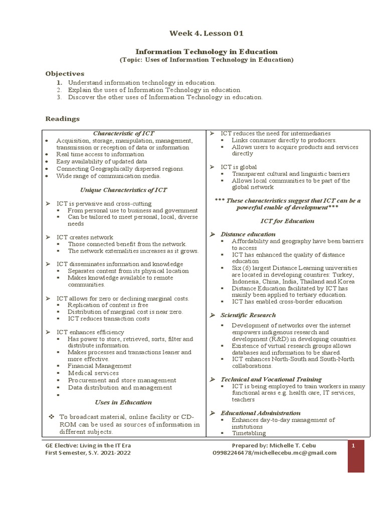 Exercises for Week 4 Lesson 1: (Uses of Information Technology in Education)