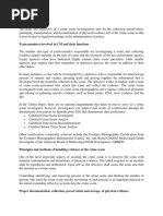 packaging and preserving the evidence, especially if it is of a biological nature.