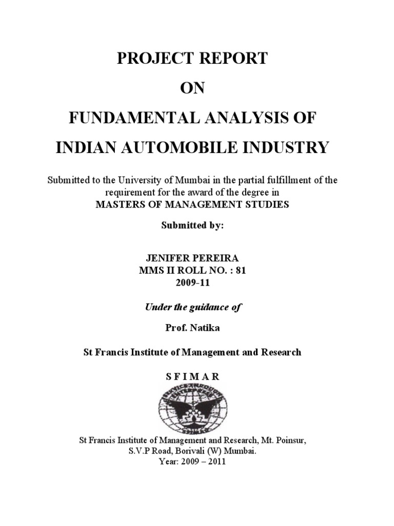 ANALYSIS OF AUTOMOBILE INDUSTRY