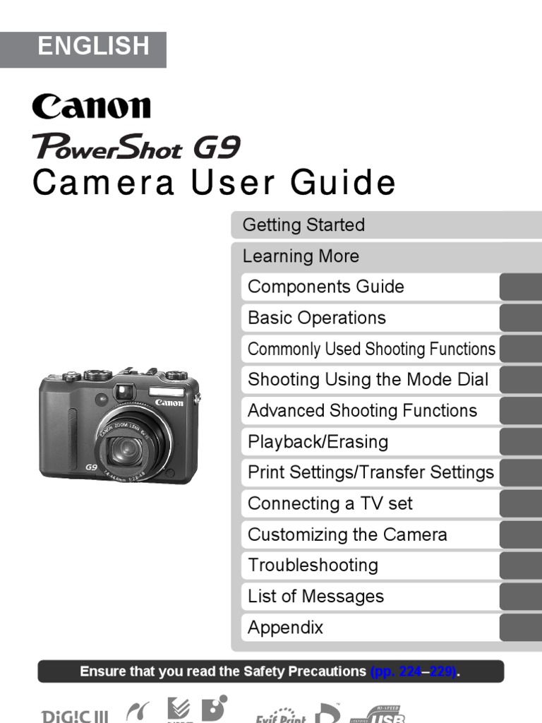 Ensure that you read the Safety Precautions (pp. 224–229).