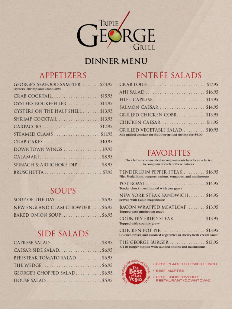 George’s Seafood Sampler . . . . . . . $23.95 Cr ab Louie. . . . . . . . . . . . . . . . . . . . . . . . $17.95