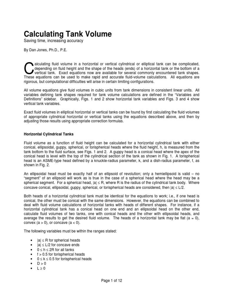 alculating fluid volume in a horizontal or vertical cylindrical or elliptical tank can be complicated,