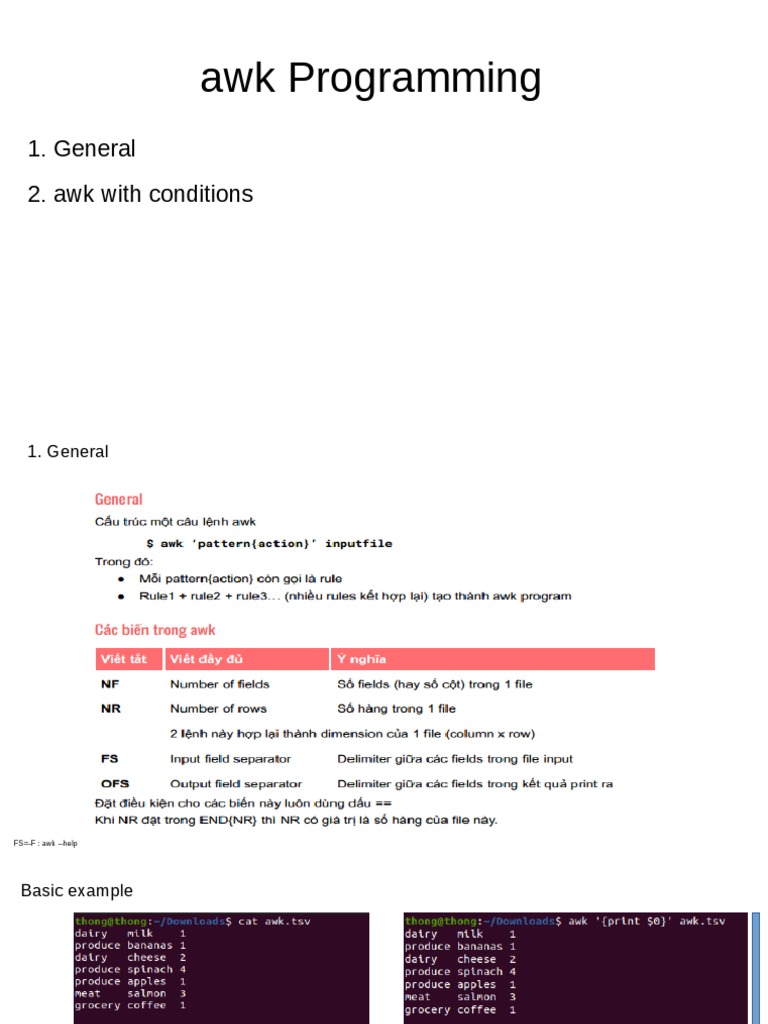 2. Awk with conditions (simple conditions, For loop, If loop)