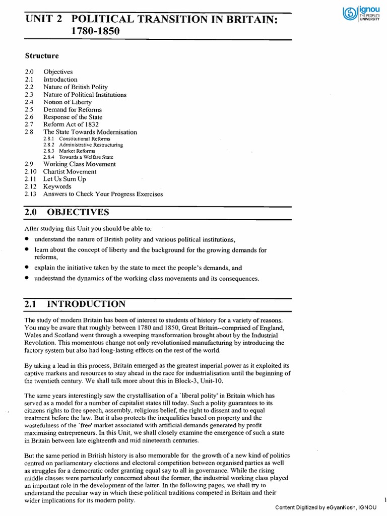 Unit 2 Political Transition in Britain:: 2.0 Objectives