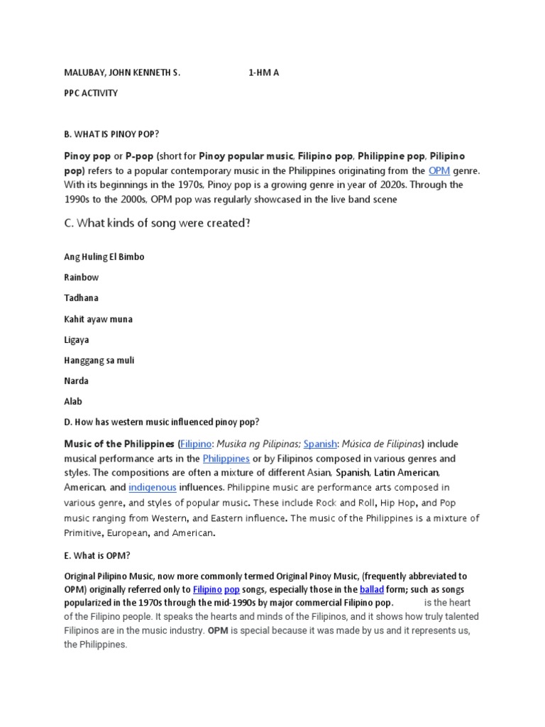 pop) refers to a popular contemporary music in the Philippines originating from the OPM genre.