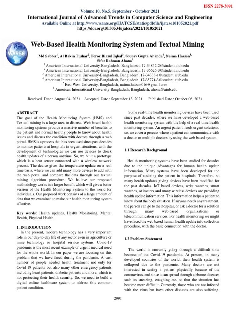 Md Sabbir et al., International Journal of Advanced Trends in Computer Science and Engineering, 10(5), September - October 2021, 2991 – 3003