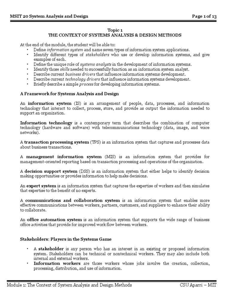 Module 1: The Context of System Analysis and Design Methods CSU Aparri – MIT