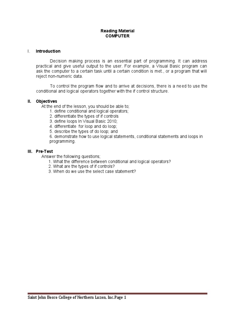Saint John Bosco College of Northern Luzon, Inc.Page 1