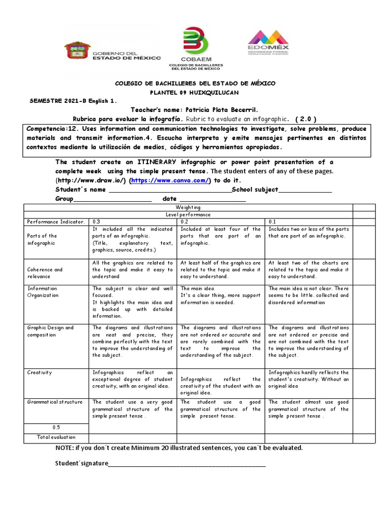 Rubrica para evaluar la infografía. Rubric to evaluate an infographic. ( 2.0 )