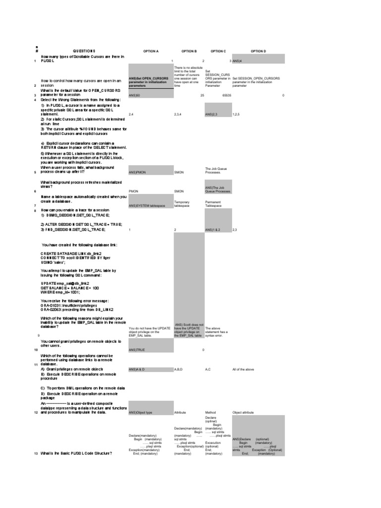# QUESTIONS OPTION A OPTION B OPTION C OPTION D