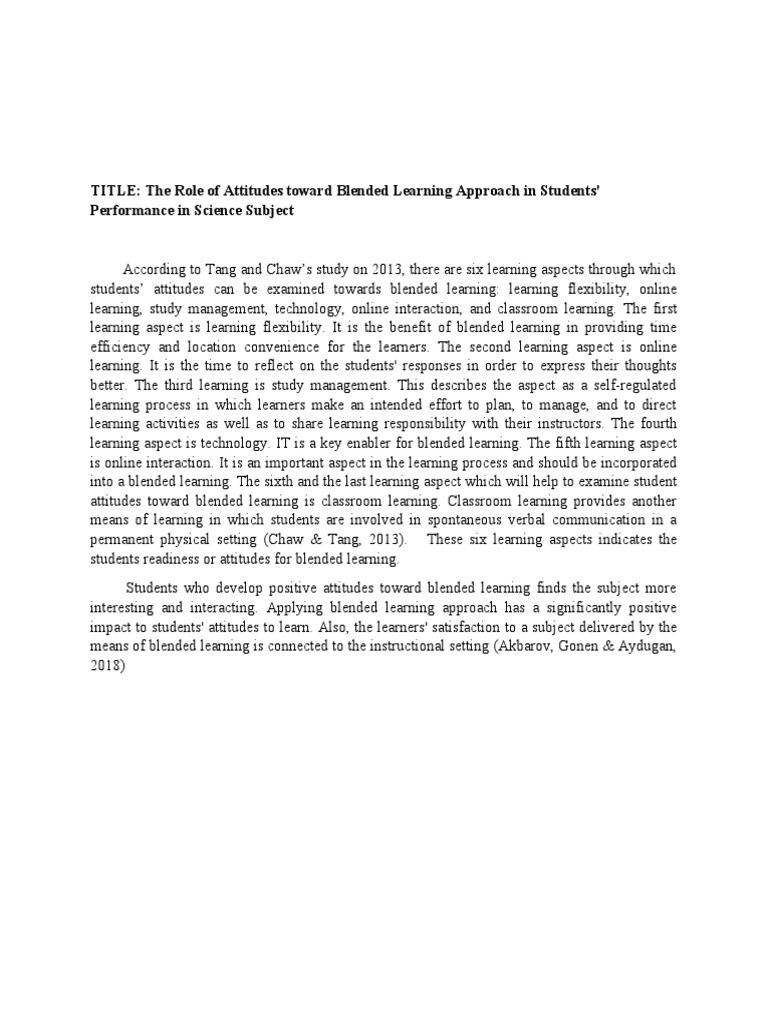 TITLE: The Role of Attitudes toward Blended Learning Approach in Students'