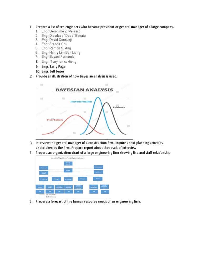 1. Prepare a list of ten engineers who became president or general manager of a large company.