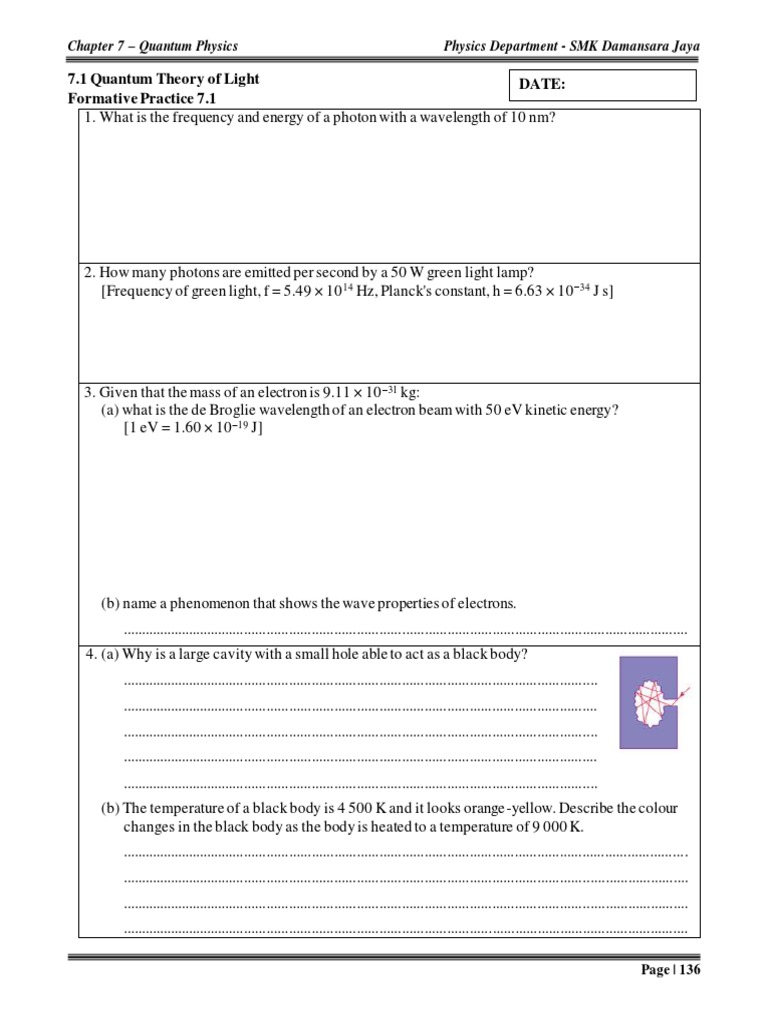 Chapter 7 – Quantum Physics Physics Department - SMK Damansara Jaya