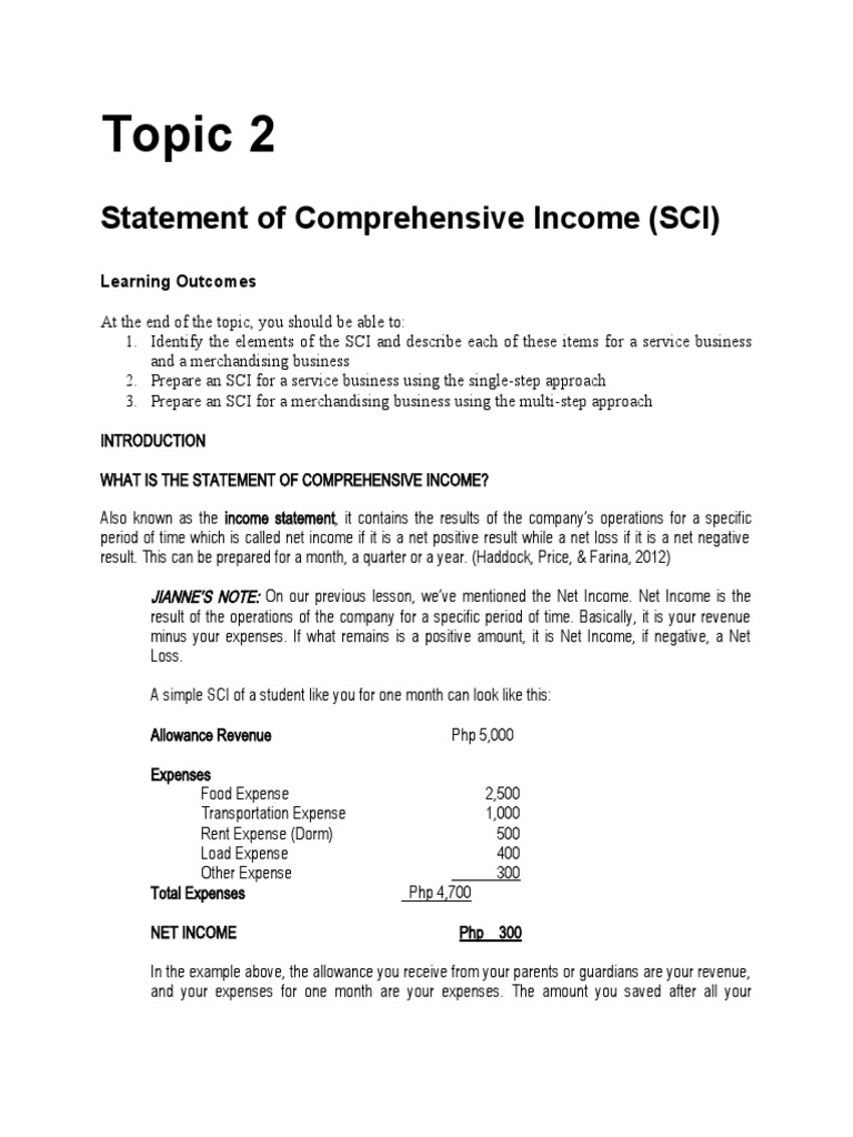 Comprehensive Income, a service company will separate all revenues and expenses (as seen in the single-step