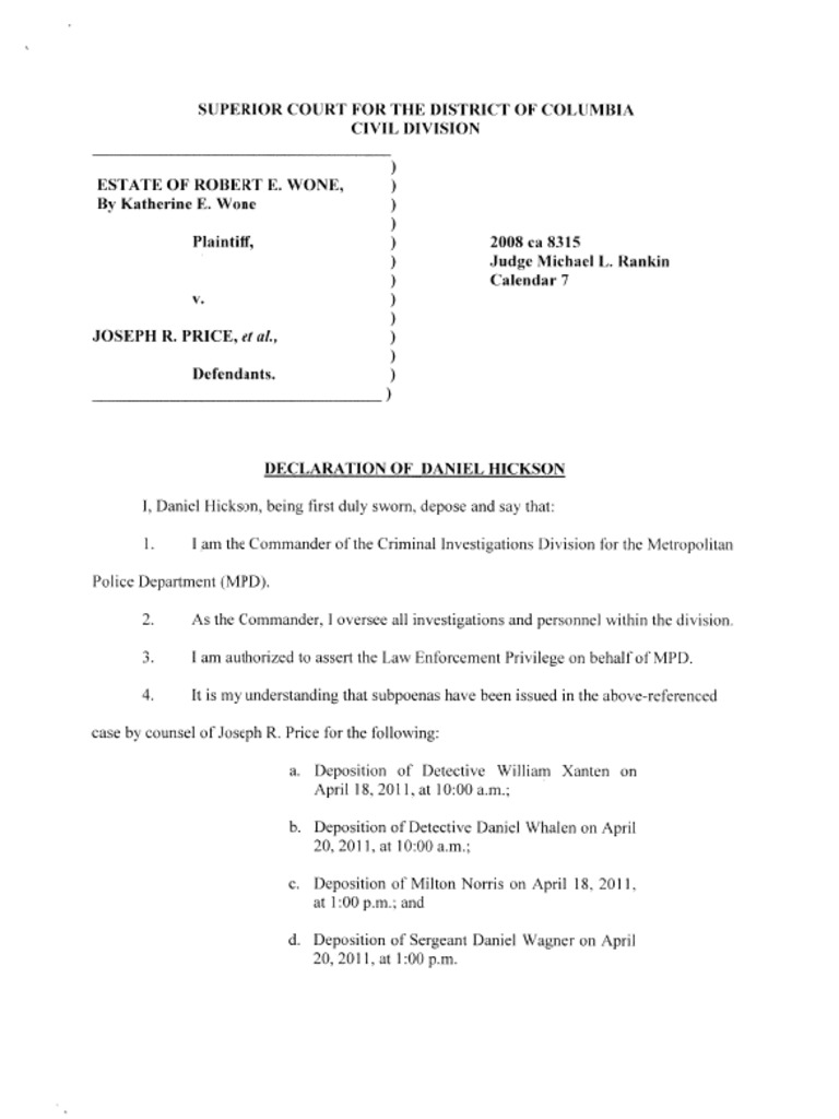 5. I have reviewed the investigative files regarding the murder of Robert Wone, to determine the nature and types of documents contained therein.