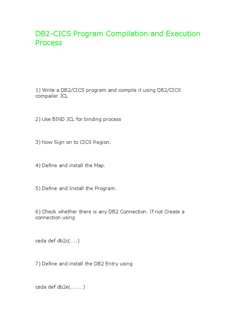 1) Write a DB2/CICS program and compile it using DB2/CICS