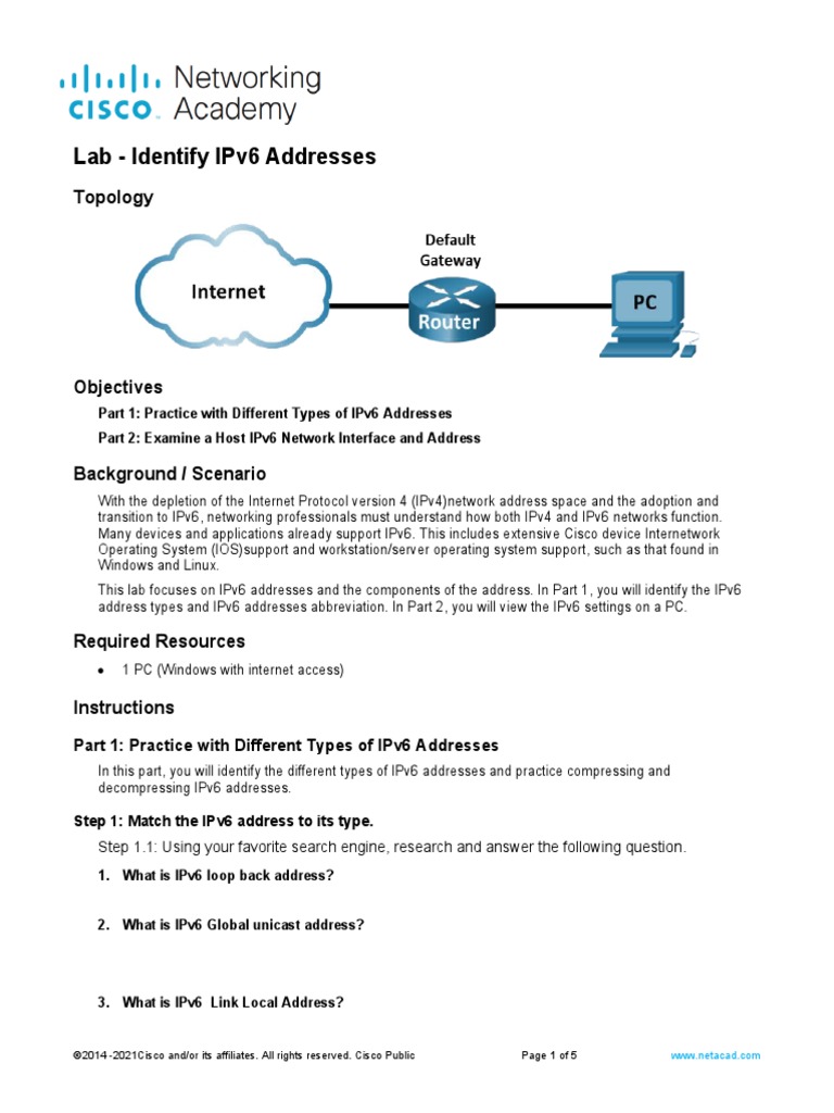 2014 -2021Cisco and/or its affiliates. All rights reserved. Cisco Public Page 1 of 5 www.netacad.com