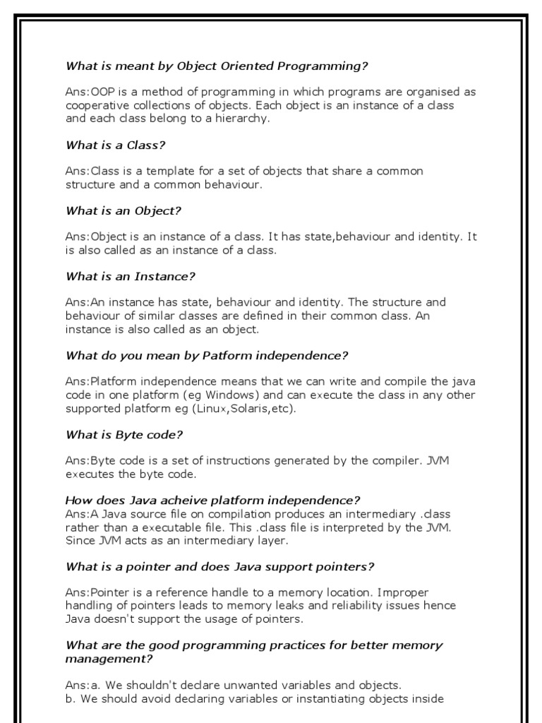Ans:Byte code is a set of instructions generated by the compiler. JVM