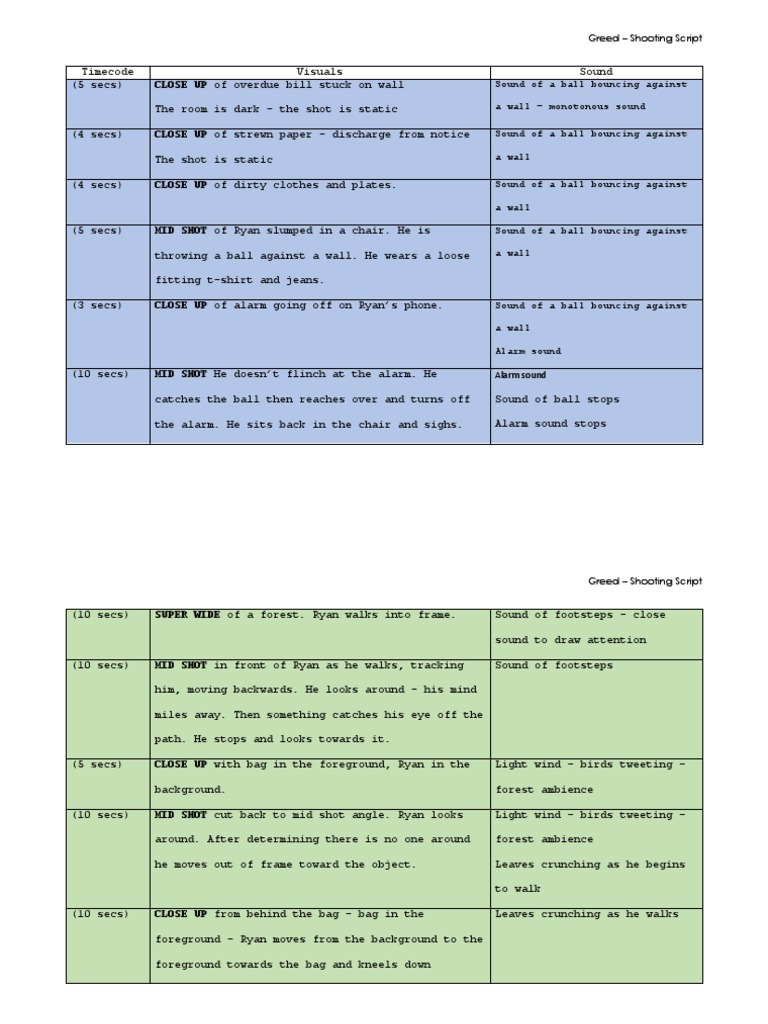 Greed – Shooting Script
