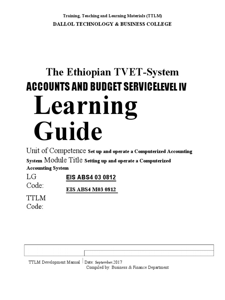 System Module Title Setting up and operate a Computerized