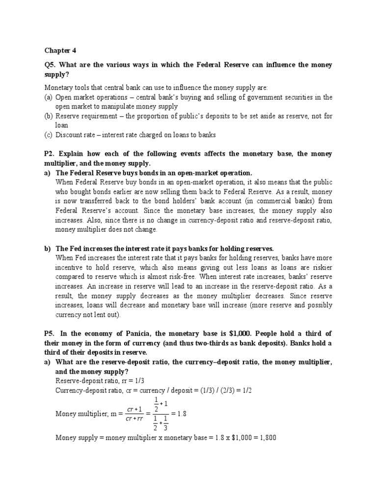 Q5. What are the various ways in which the Federal Reserve can influence the money