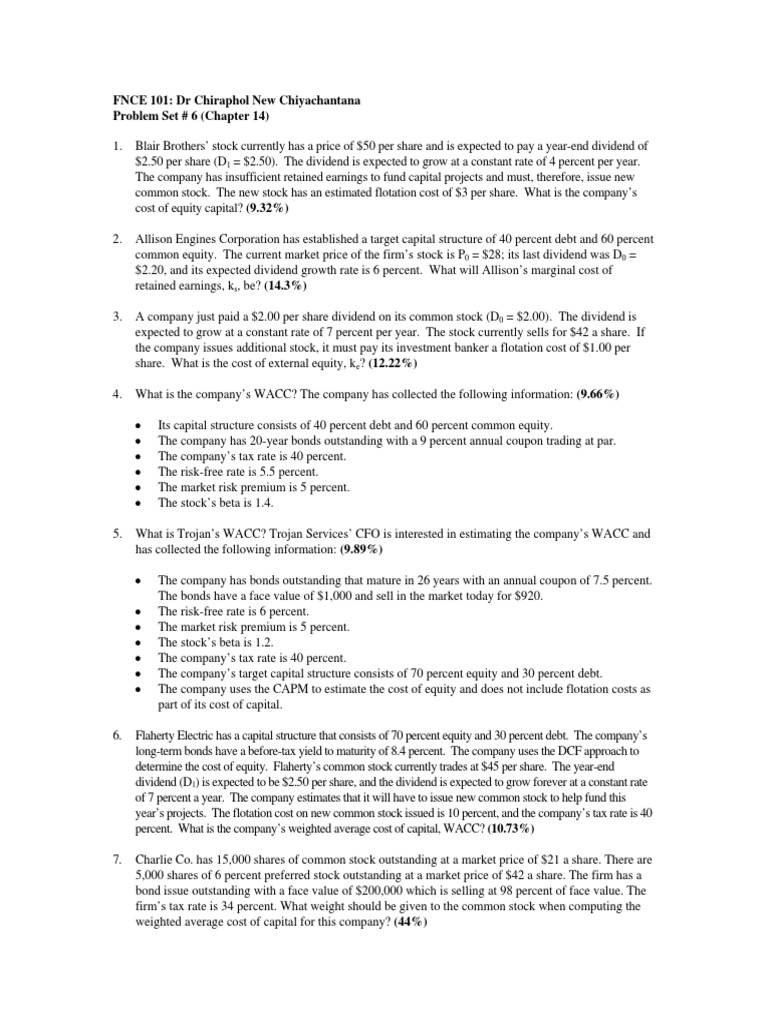 regarding the company’s cost of capital can be summarized as follows: (9.70%)
