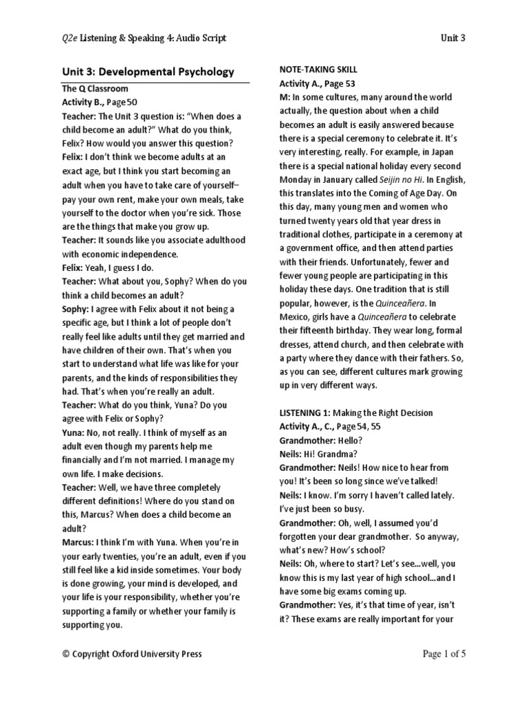 Q2e Listening & Speaking 4: Audio Script Unit 3