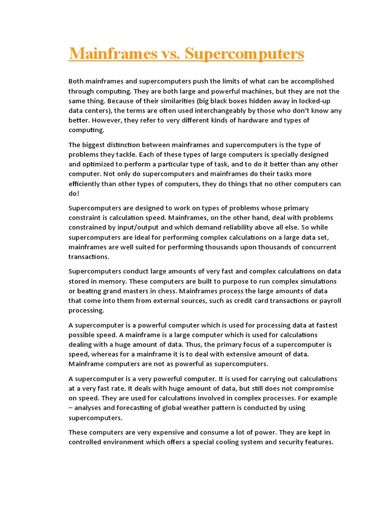 speed, whereas for a mainframe it is to deal with extensive amount of data.