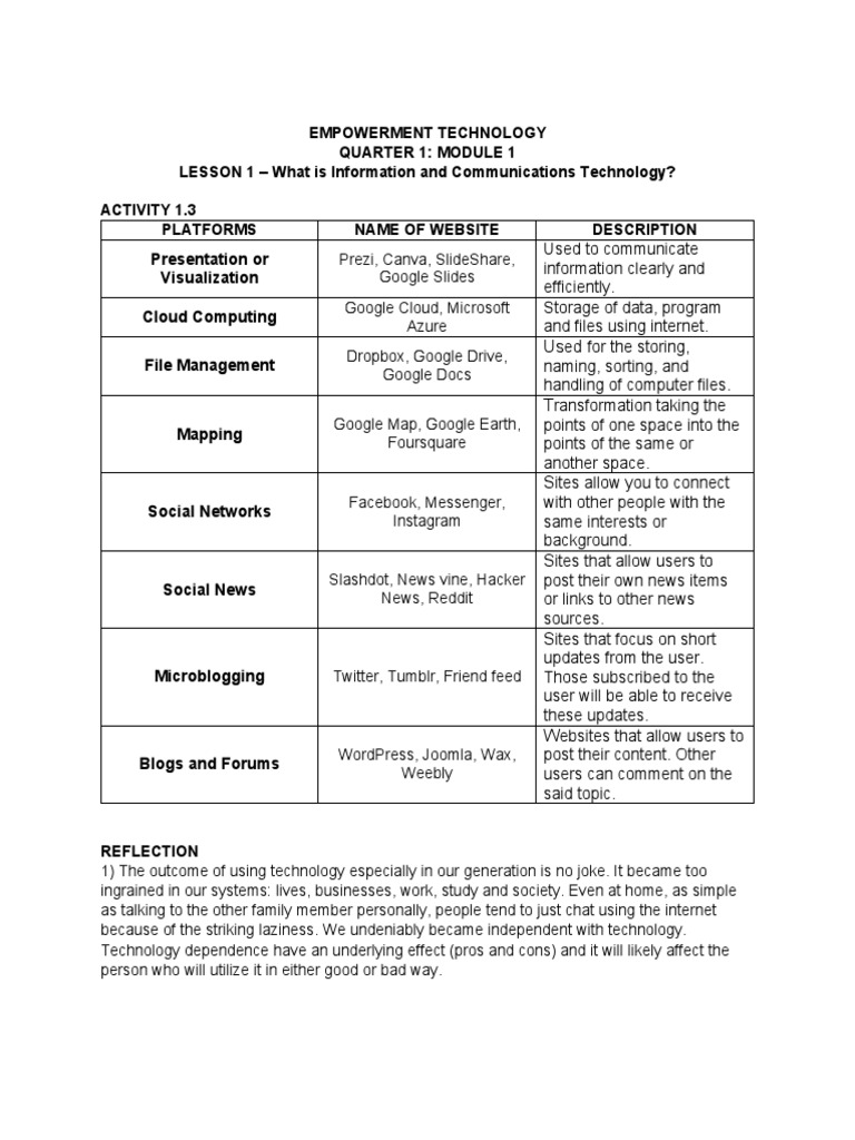 PLATFORMS NAME OF WEBSITE DESCRIPTION