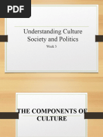 an individual interacts with the society. Examples of these are politics, religion, language,