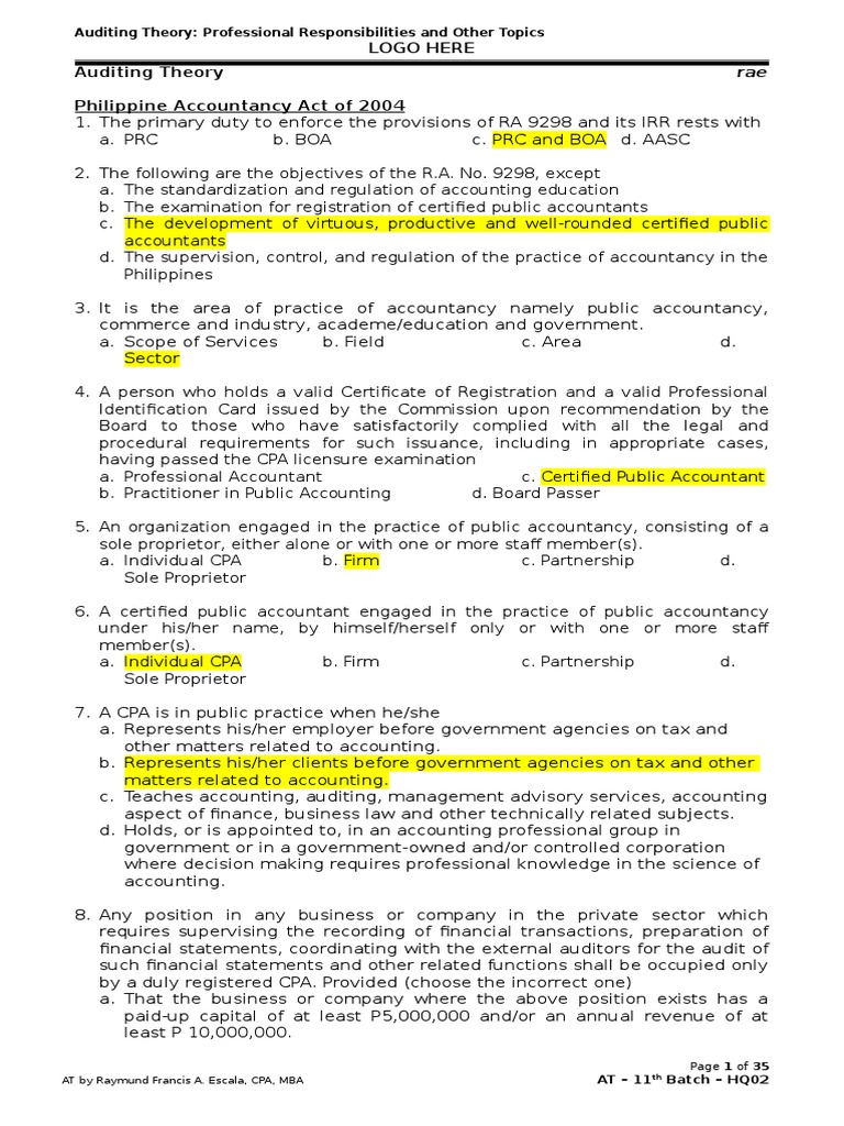 Logo Here Auditing Theory Philippine Accountancy Act of 2004