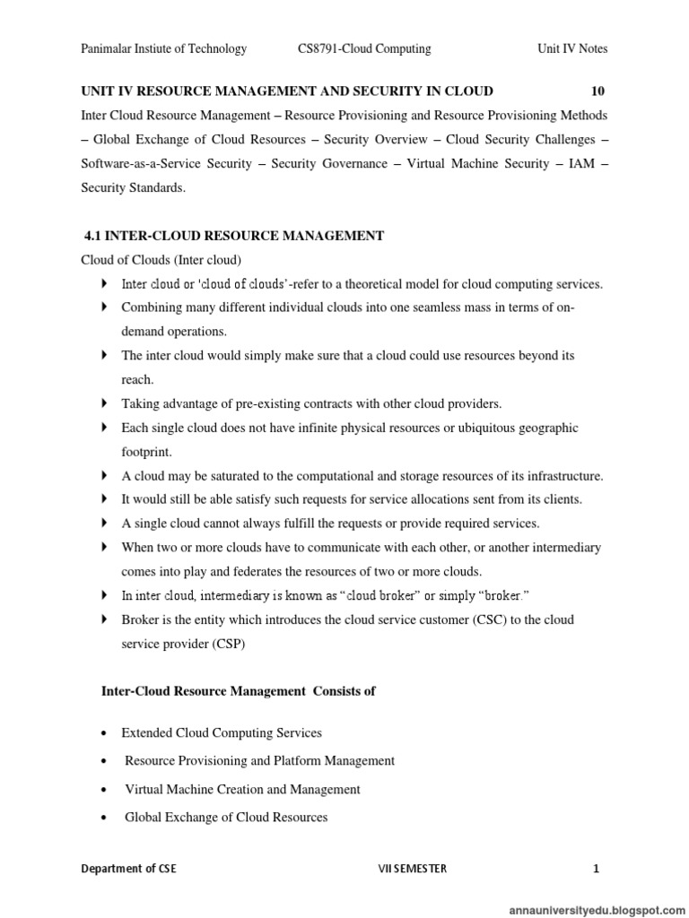 Panimalar Instiute of Technology CS8791-Cloud Computing Unit IV Notes