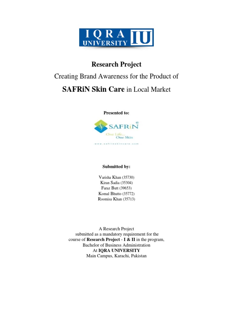 The purpose of this report is to recognize this potential and create awareness of Safrin Skin Care