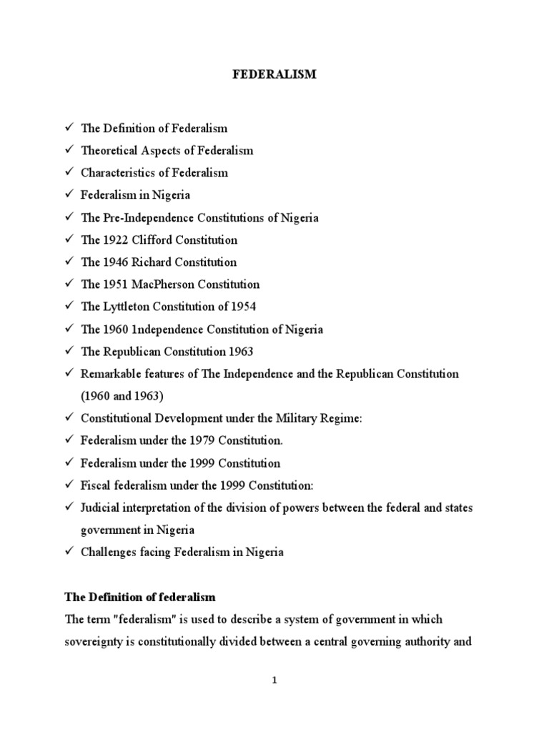 Federalism as practiced in under the 1999 Constitution does not make adequate