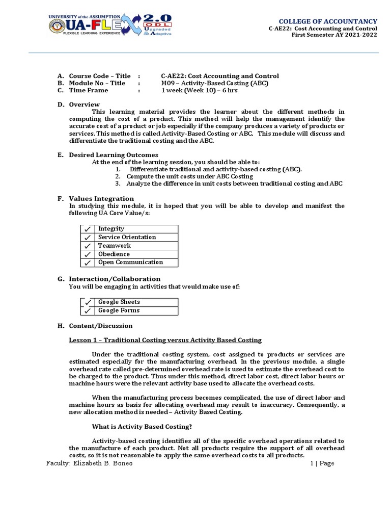 B. Module No – Title : M09 – Activity-Based Costing (ABC)