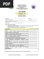 Note: For schools with only one observer, this will serve as the final rating sheet.