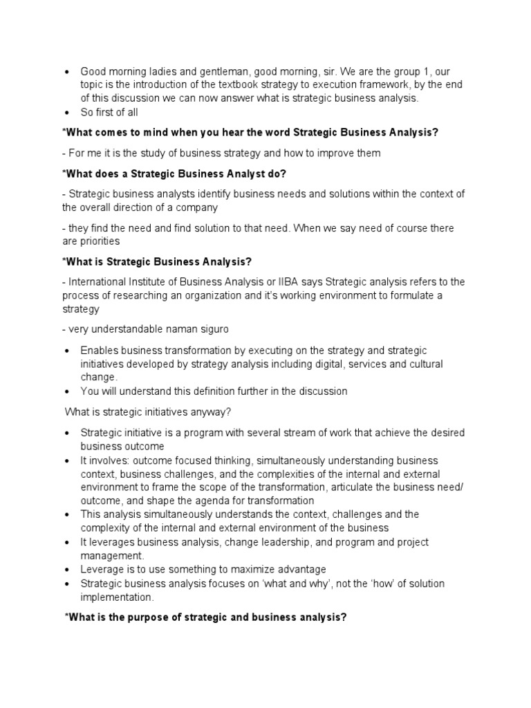 of this discussion we can now answer what is strategic business analysis.