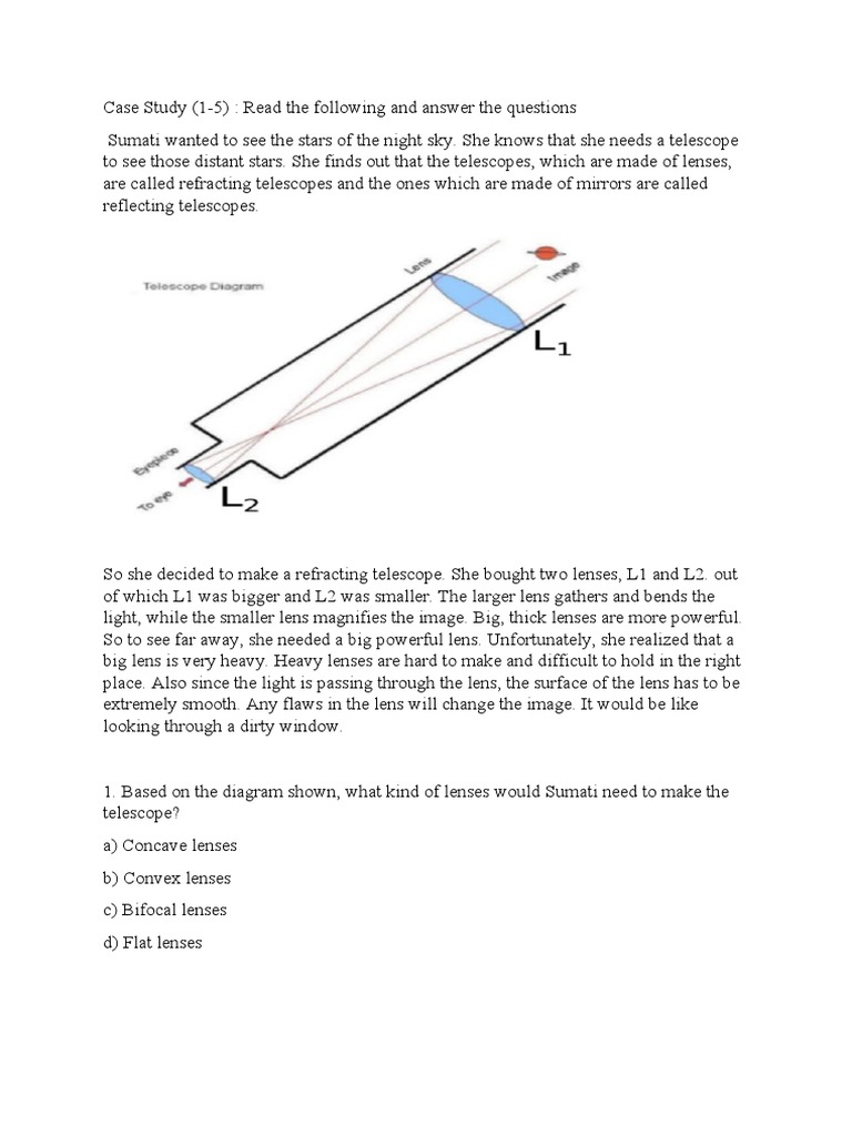 1. Based on the diagram shown, what kind of lenses would Sumati need to make the